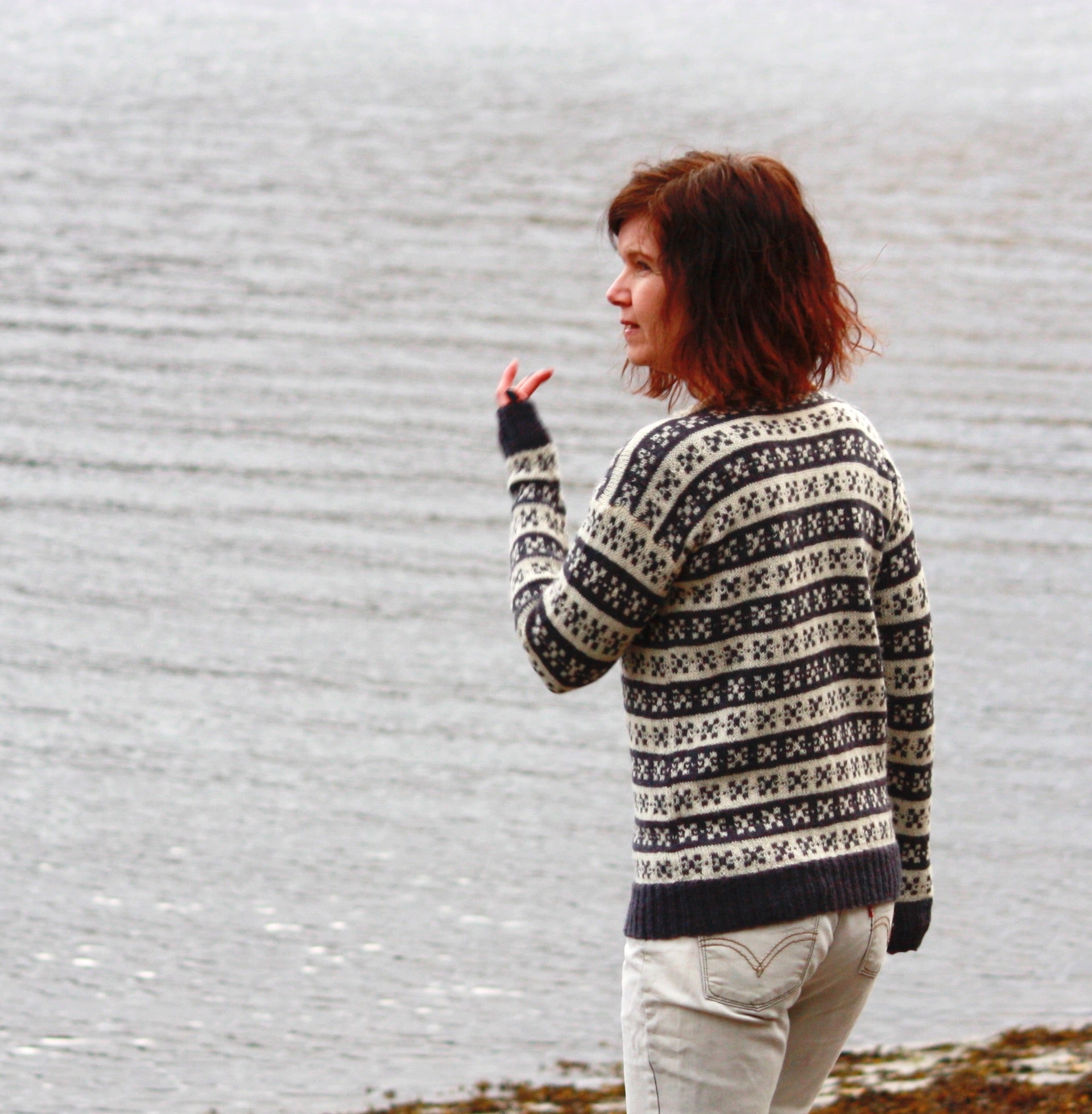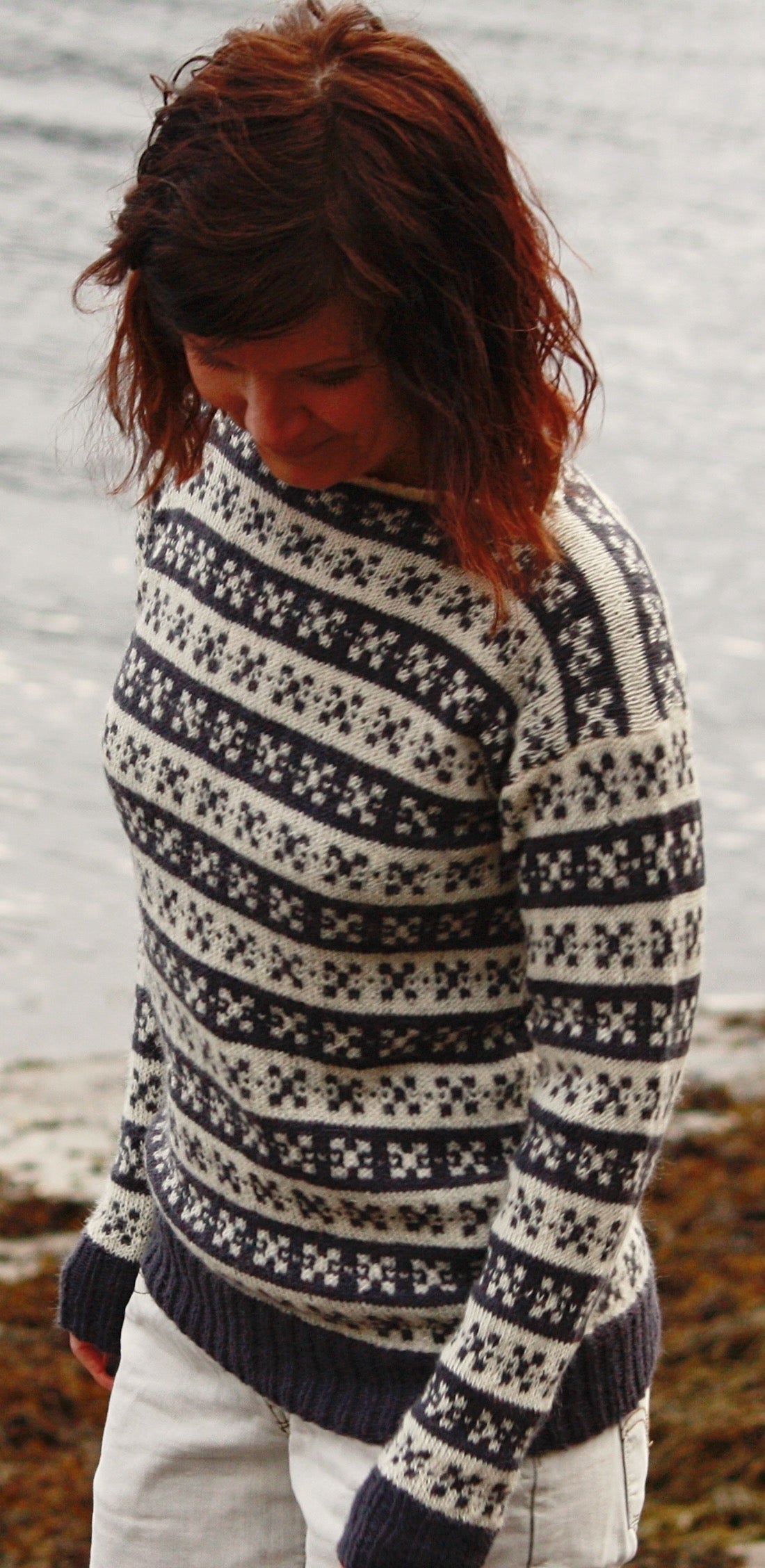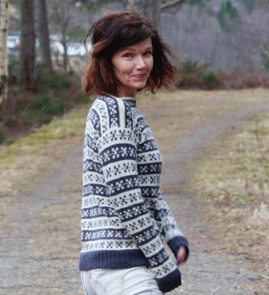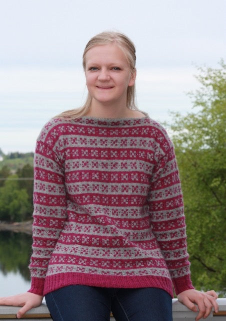 Designet til denne genseren er inspirert fra Sigdals-kofta. Idéen til designet til "SigdalsGenser", er fordi min familie på far-siden er fra Sigdal. Samt min bestemor som lærte meg å strikke er fra Sigdal. I oppskriften er det strikket med myke og lette ISAGER Alpaca 2 (50% alpaca og 50% ull - 250 meter pr 50 gram). Genseren strikkes på rundpinne, nedenfra og opp med enkel tråd Isager Alapca 2. Det er i sydde ermer til denne modellen.