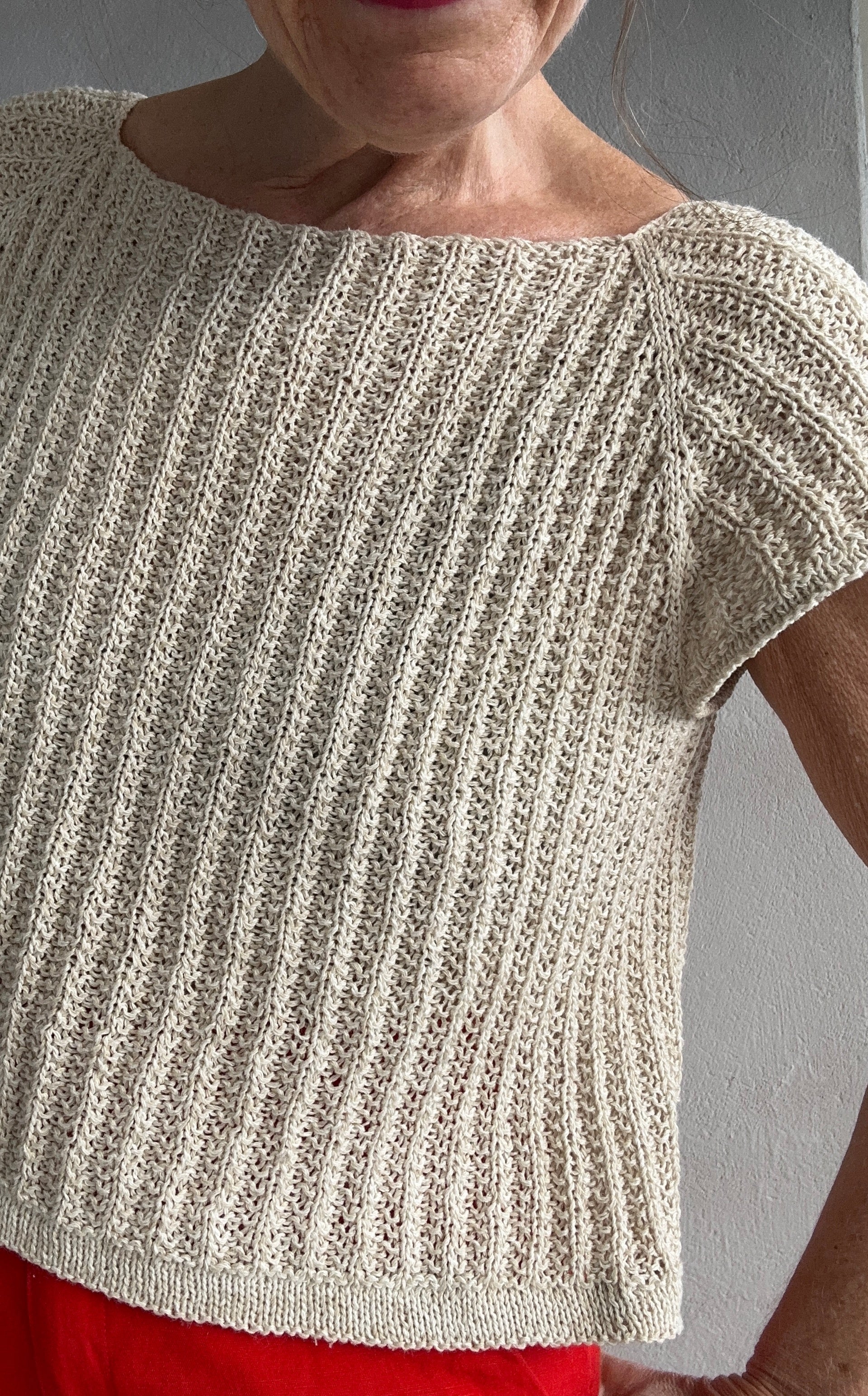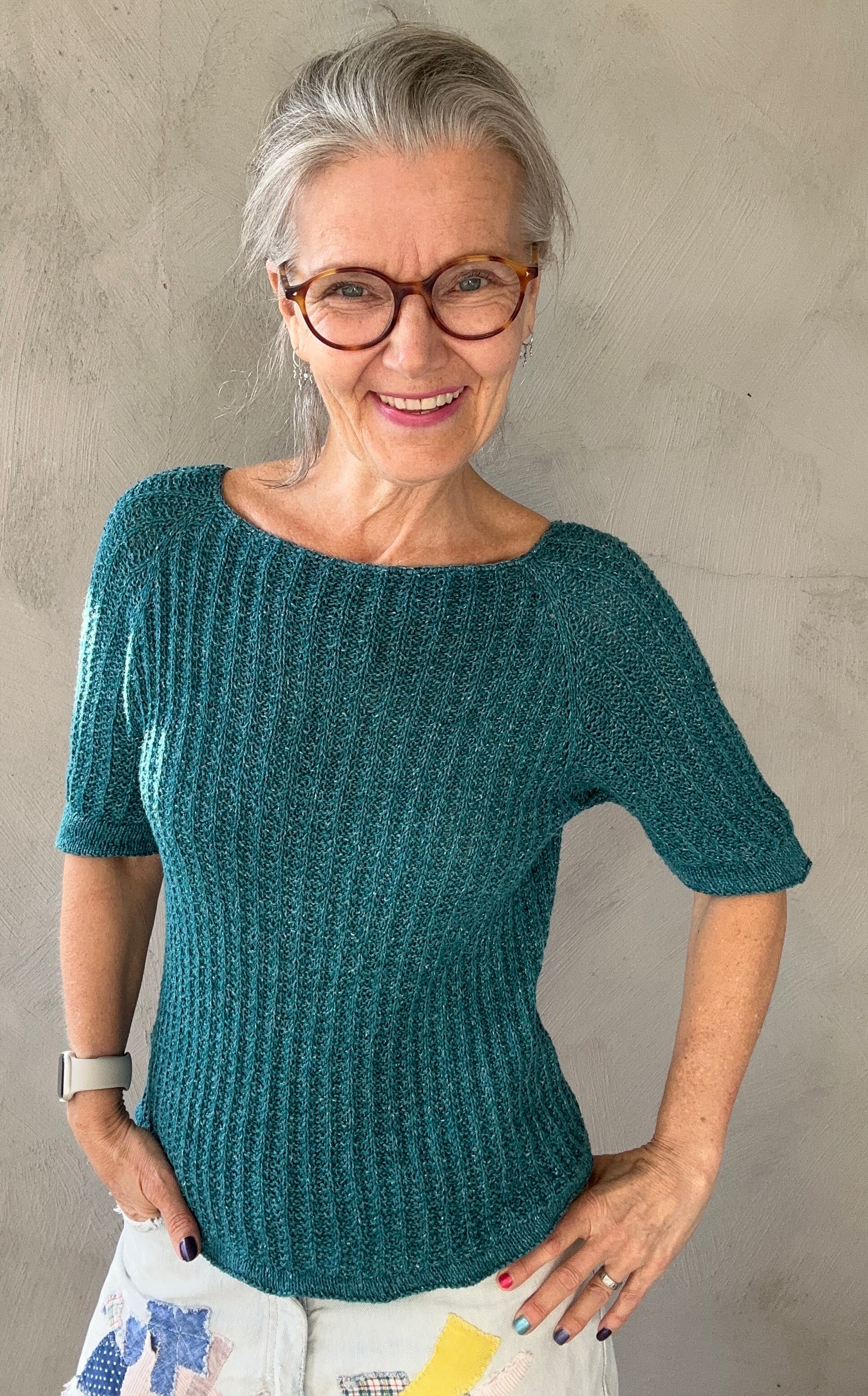 Sumar means Summer, so this shirt is perfect knit for your summer wardrobe. SumarJumper / Sumar Shirt is worked top down on a circular needle. The pattern here the shirt is worked with double thread: 1 thread ISAGER Trio and 1 thread ITO Kinu. You can easily try on the shirt while knitting, by placing all stitches on 2 long circular needles. The sleeves can be worked short or long (approx. to the elbow). Keep in mind that SumarJumper / Sumar Shirt widens when being worn, due to the elastic structure pattern.