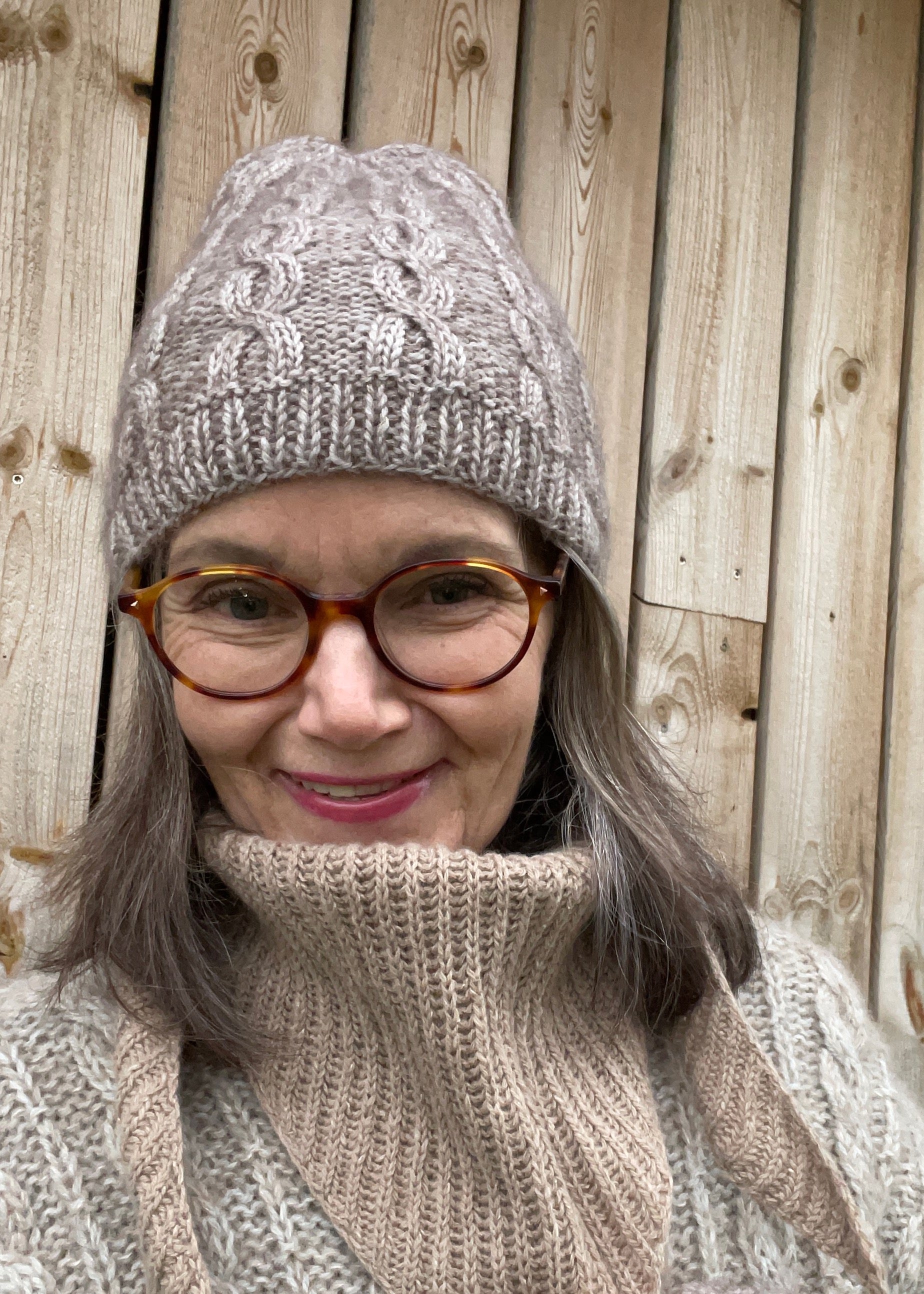 In this pattern the beanie is worked with 2 threads on a circular needle, 1 thread SOLBERG SPINDERI Vilja and 1 thread Alva. The cables are worked with a cable needle. If you want to lengthen your beanie, start with the decreases at the top later than explained here.