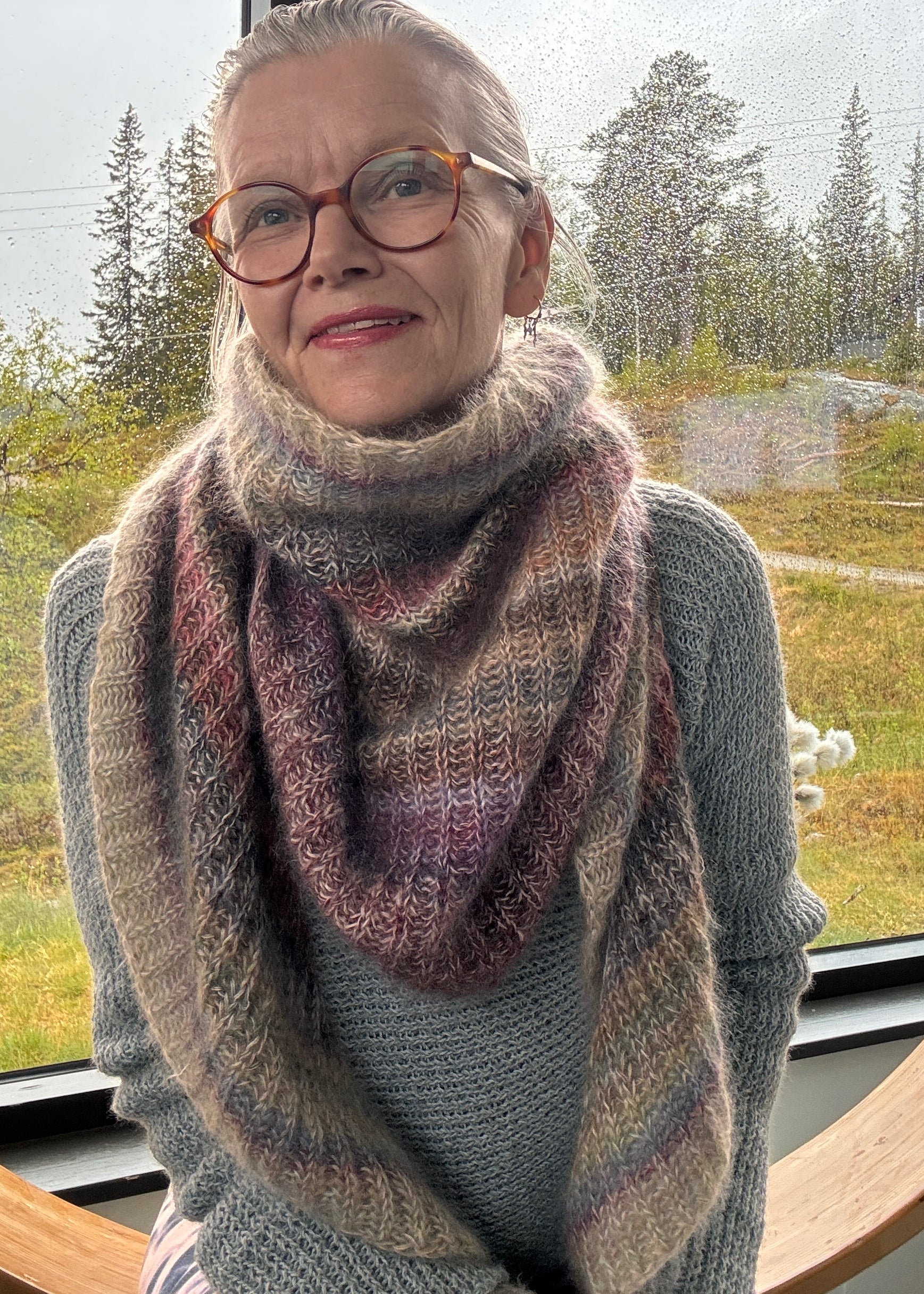 I denne oppskriften strikkes det med fire tråder ITO Sensai samtidig, i ulike farger. Dette gir skjerfet vakre sjatteringer og et spennende fargespill. I oppskriften finner du en oversikt over hvilke farger som er strikket sammen.