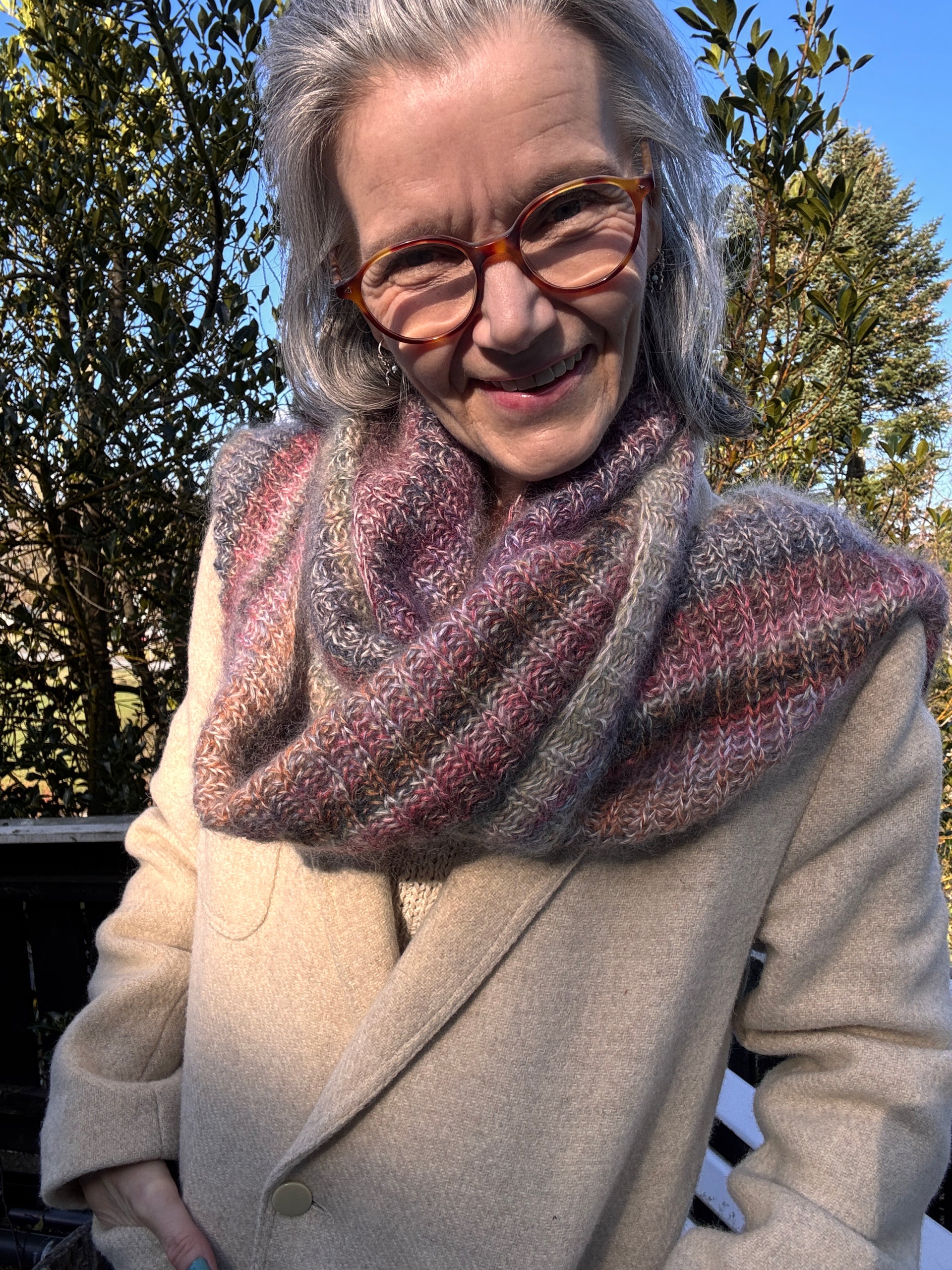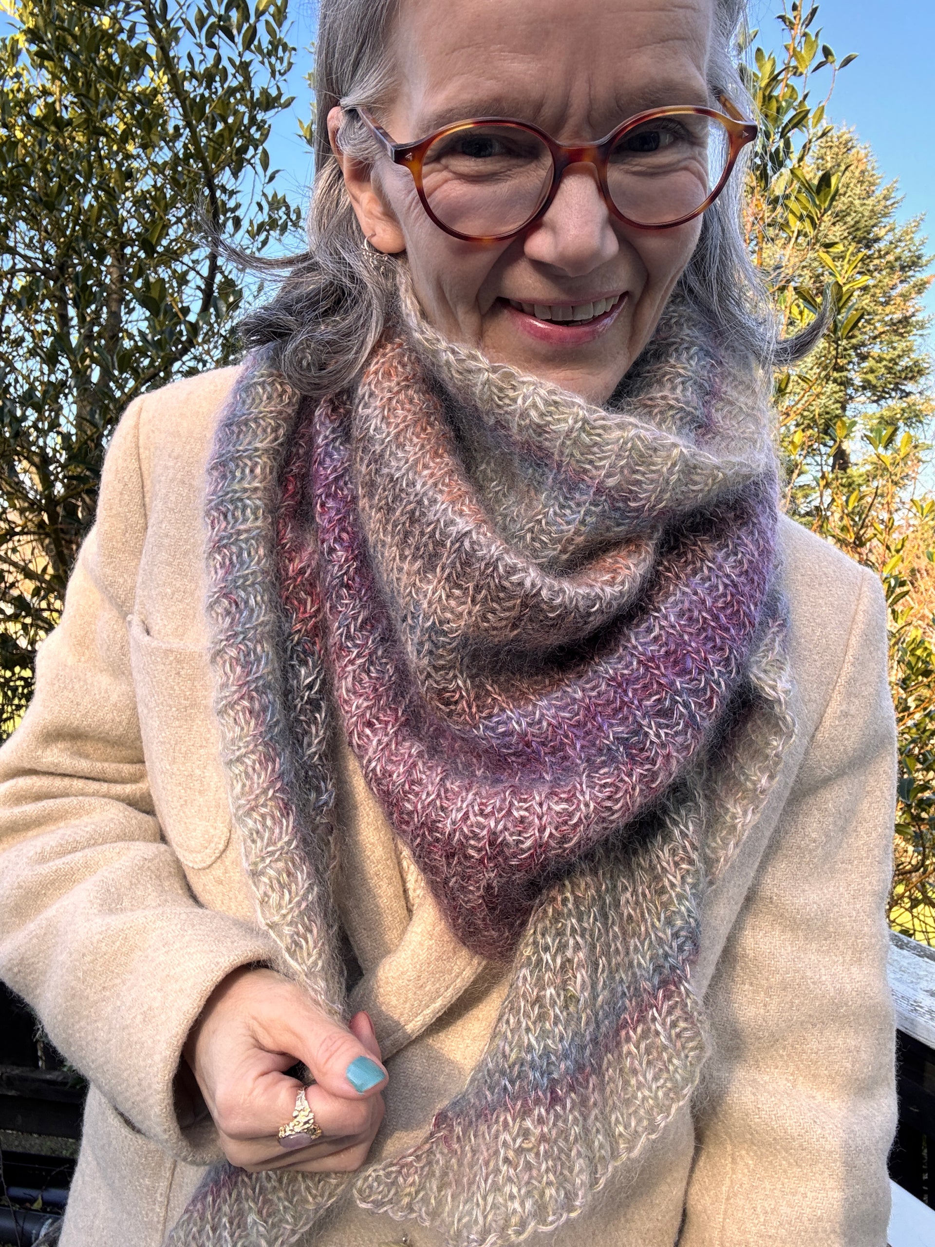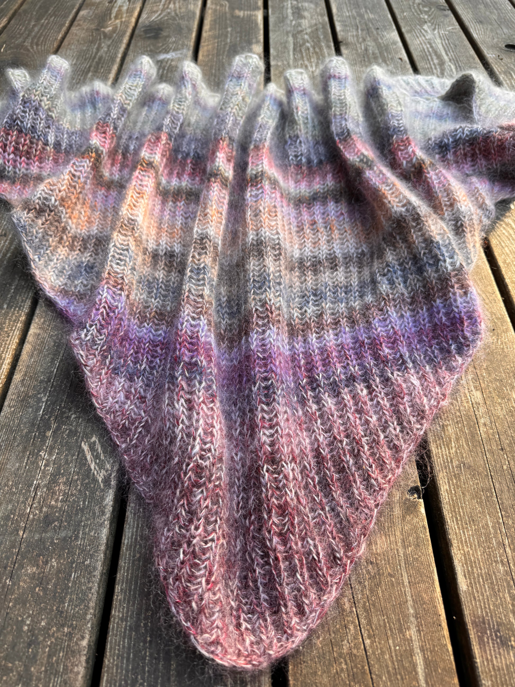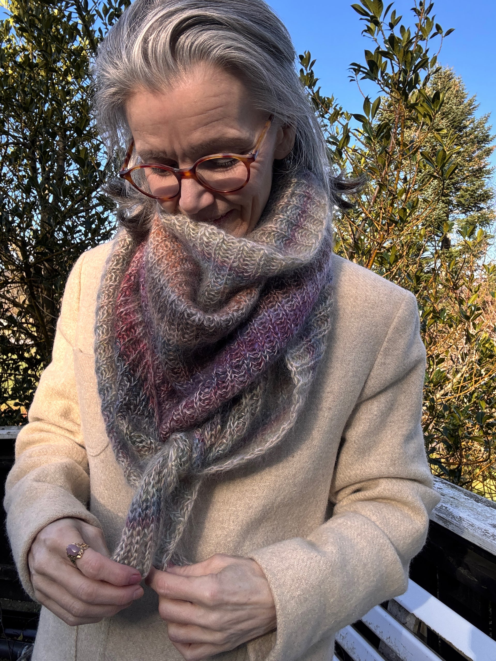Dette skjerfet er lillesøster til Fluffy Skjerf, men det er likevel noe annerledes. Til dette skjerfet har jeg valgt å strikke med fire tråder av ITO Sensai samtidig. Det blir et nydelig skjerf med denne garnkvaliteten.