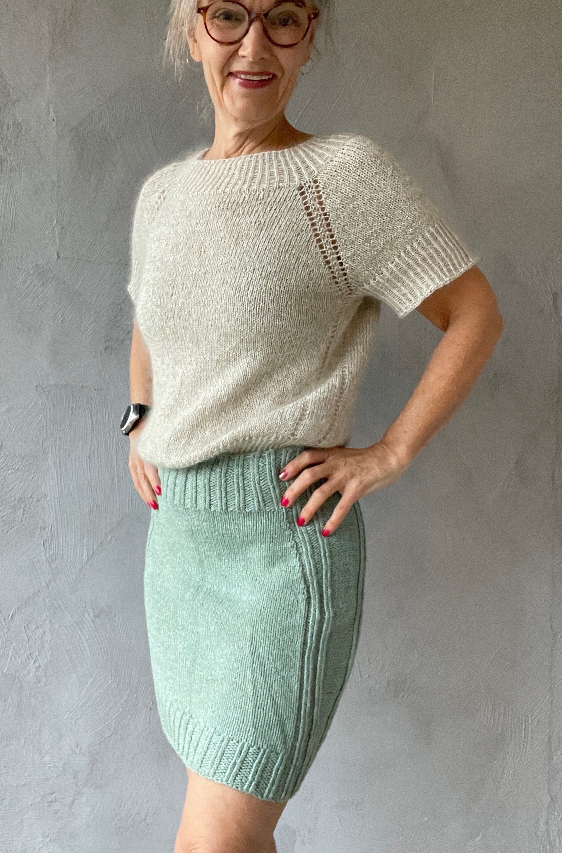Möchtest Einfacher Rock bedeutet einfach auf Norwegisch. So ist dieser Rock einfach zu stricken. Sie können es auch in vielen Farben feinstricken. Der Rock wird von oben (ab dem Taillenbündchen) nach unten auf einer Rundstricknadel gearbeitet. In disem Anleitung Der Rock er wird zweifädig gestrickt – 1 Faden SANDNES Line und 1 Faden ISAGER Alpaca 2.