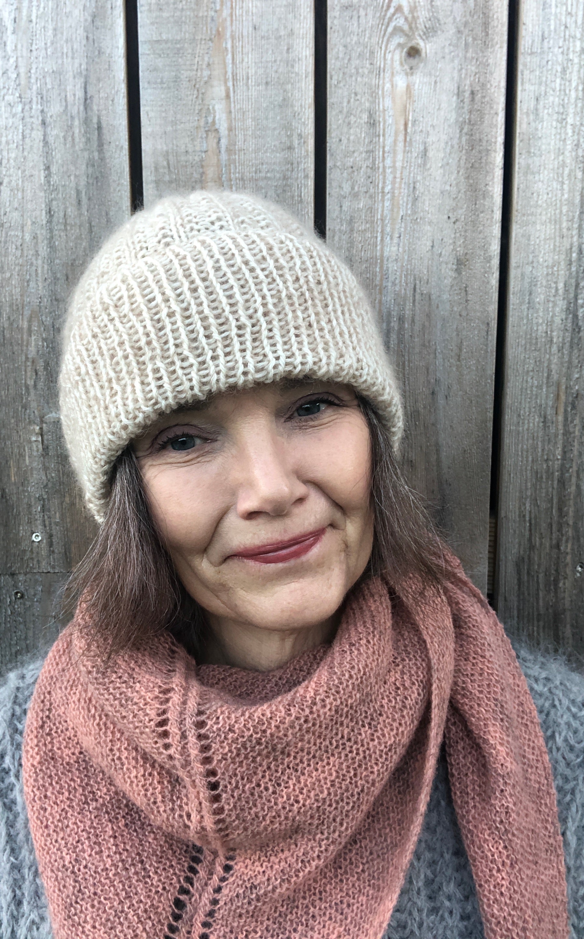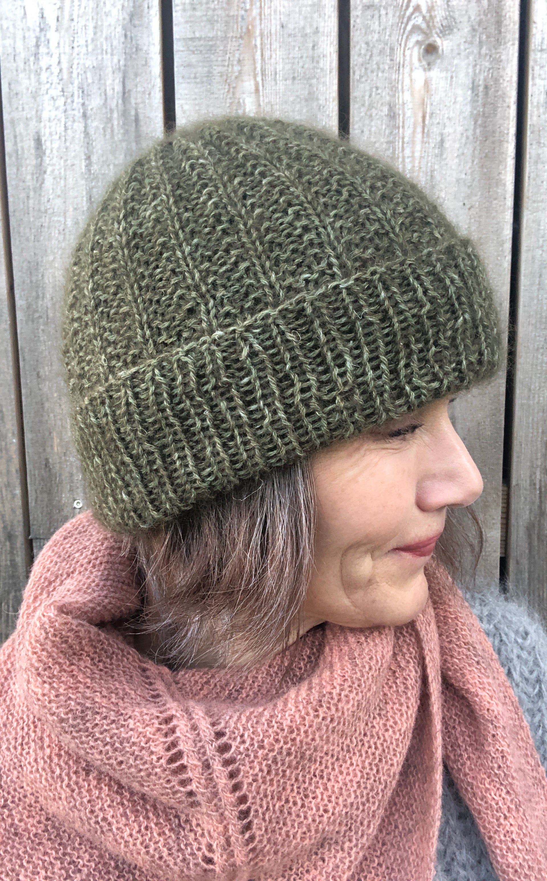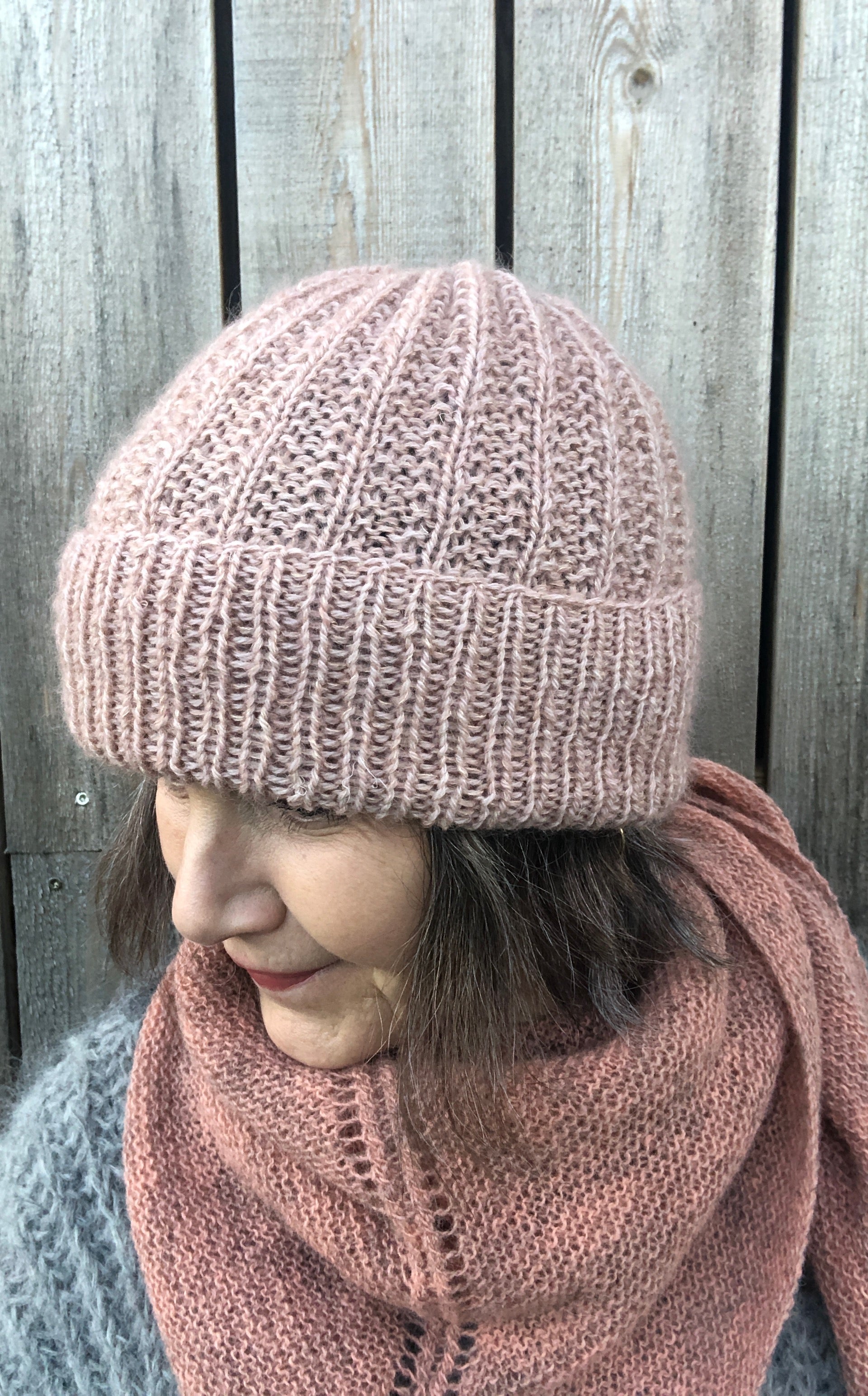 I love to knit hats / beanies and also to wear them. The long rib, is just perfect for those cold days. And the structur pattern is easy to knit. Bendik hat is worked bottom up. The needle size is just a reference. The hat here is worked with double thread, 1 thread Isager Merilin and 1 thread Silk Mohair. The rib here is worked long, then you can fold bottom edge up to desired length.