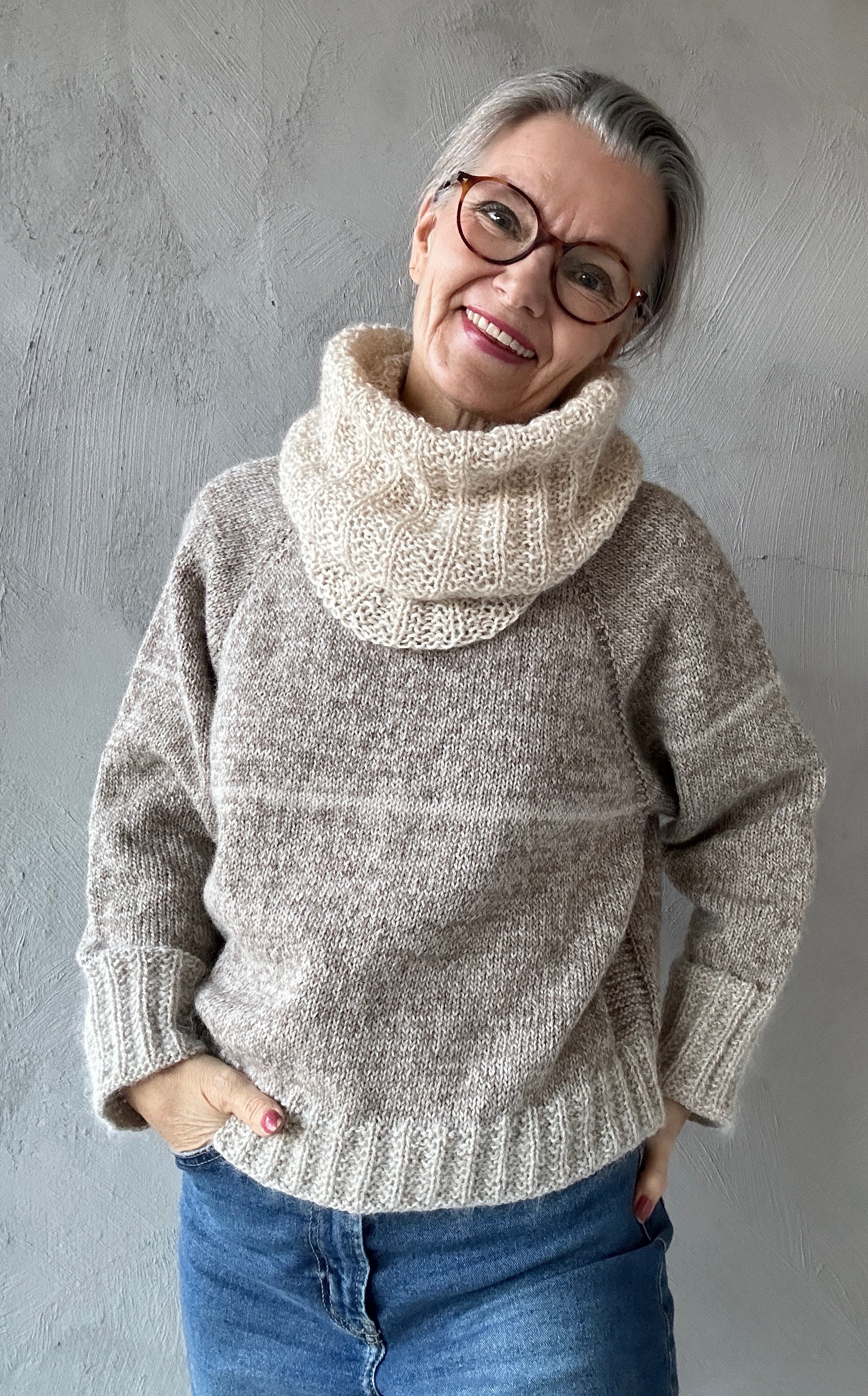 Garnmengde 50 gram Isager Merilin - 208 m / 50 gram og 25 gram Isager Silk Mohair - 212 m / 25 gram