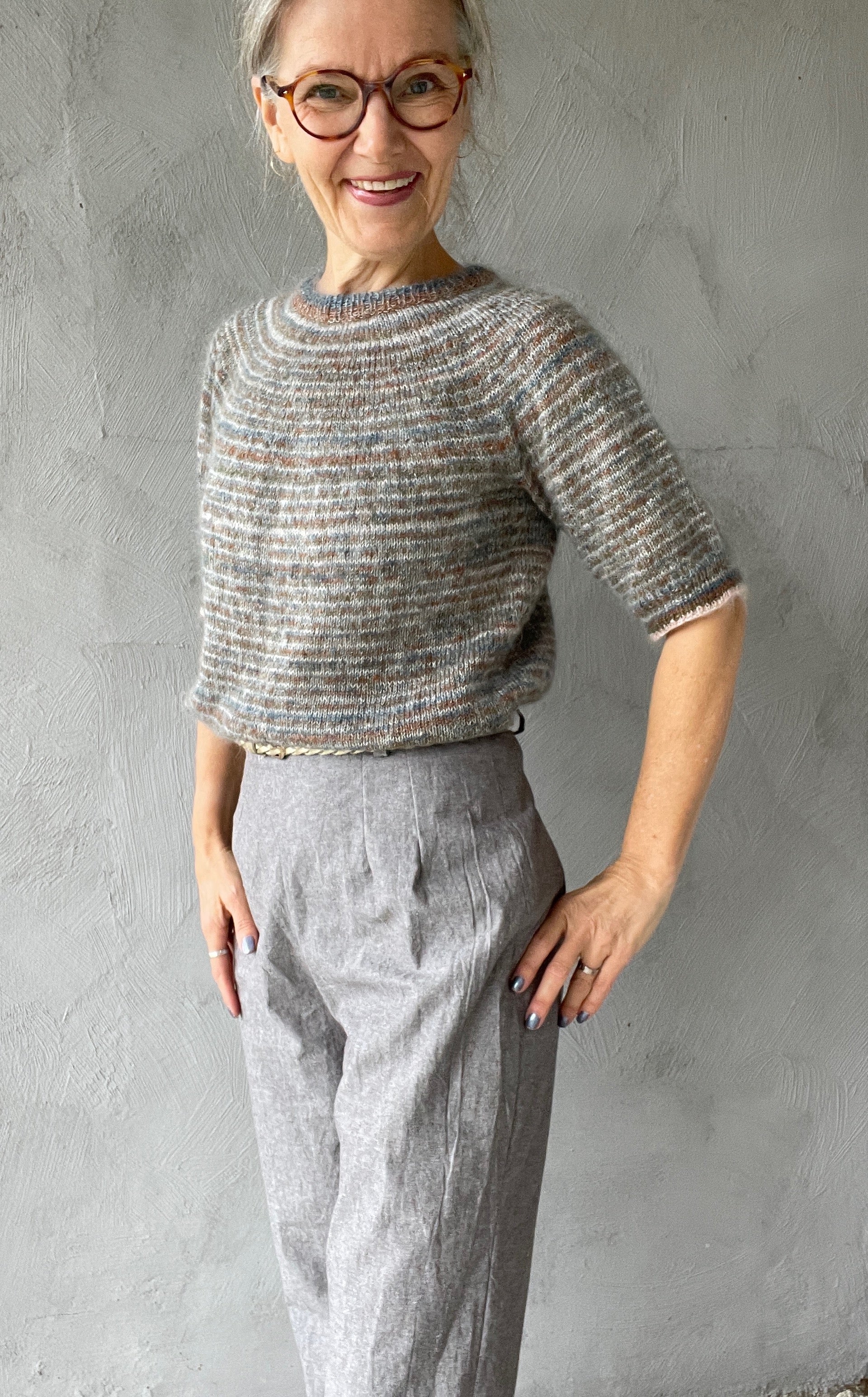 Yarn : ITO Sensai (60% kid mohair and 40% silke, 240 m / 20 gram. Yarn Weight Lace). Main colour Top Light Gray, pattern colour 1 Billard, pattern colour 2 Golden Oak, pattern colour 3 Olive, pattern colour 4 Pale Blush